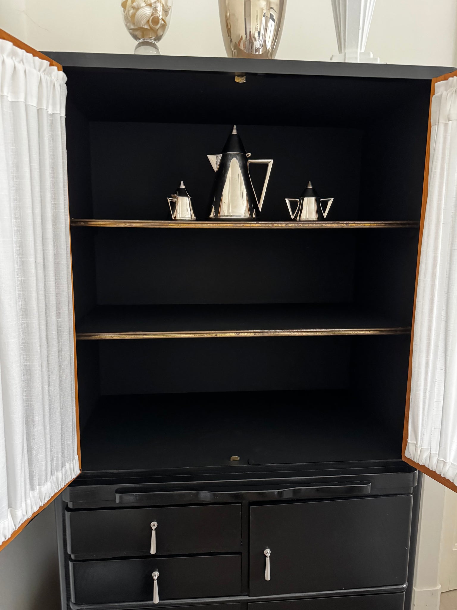 This stunning Art Deco cabinet dates back to the 1930s and is a one of a kind vintage piece.