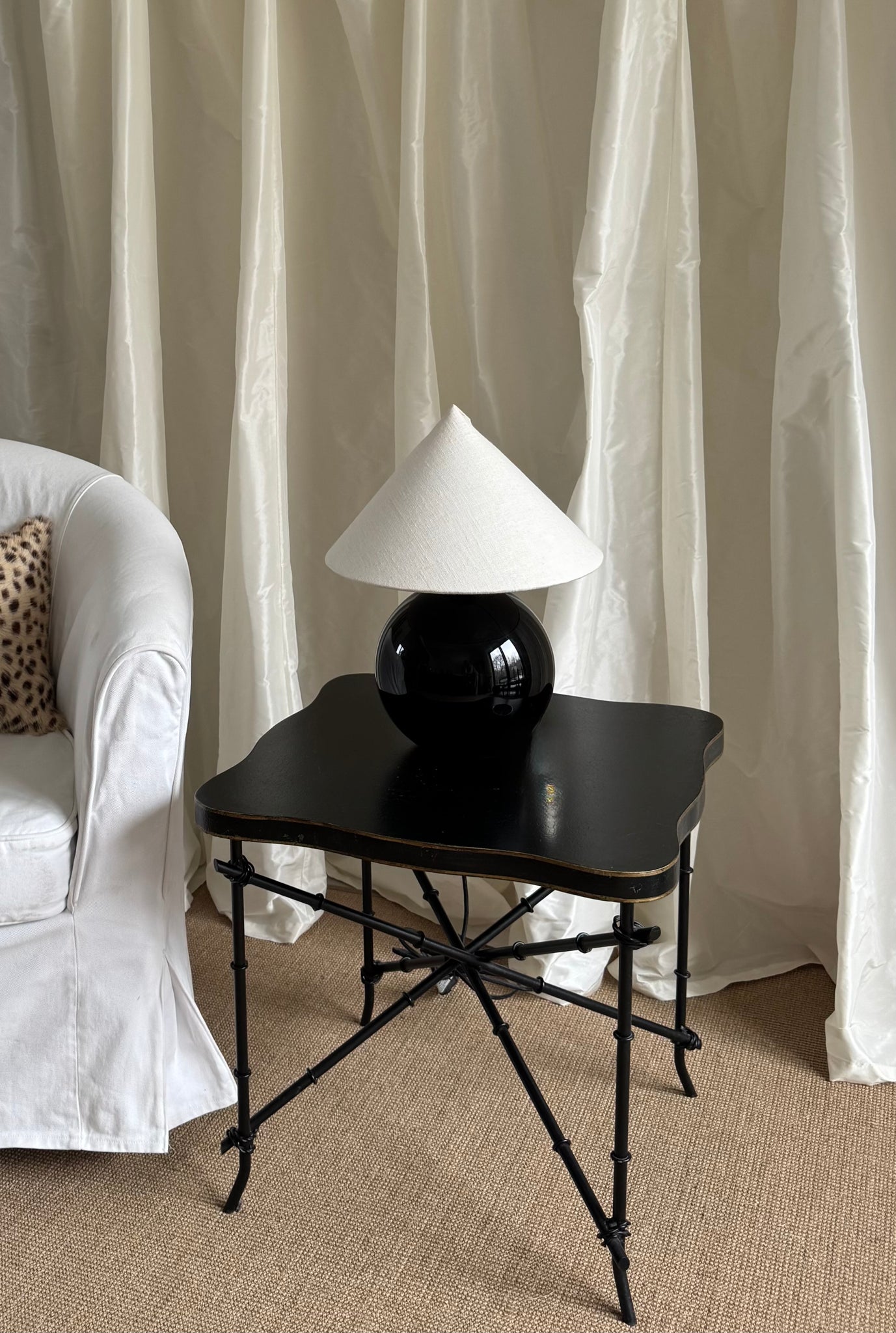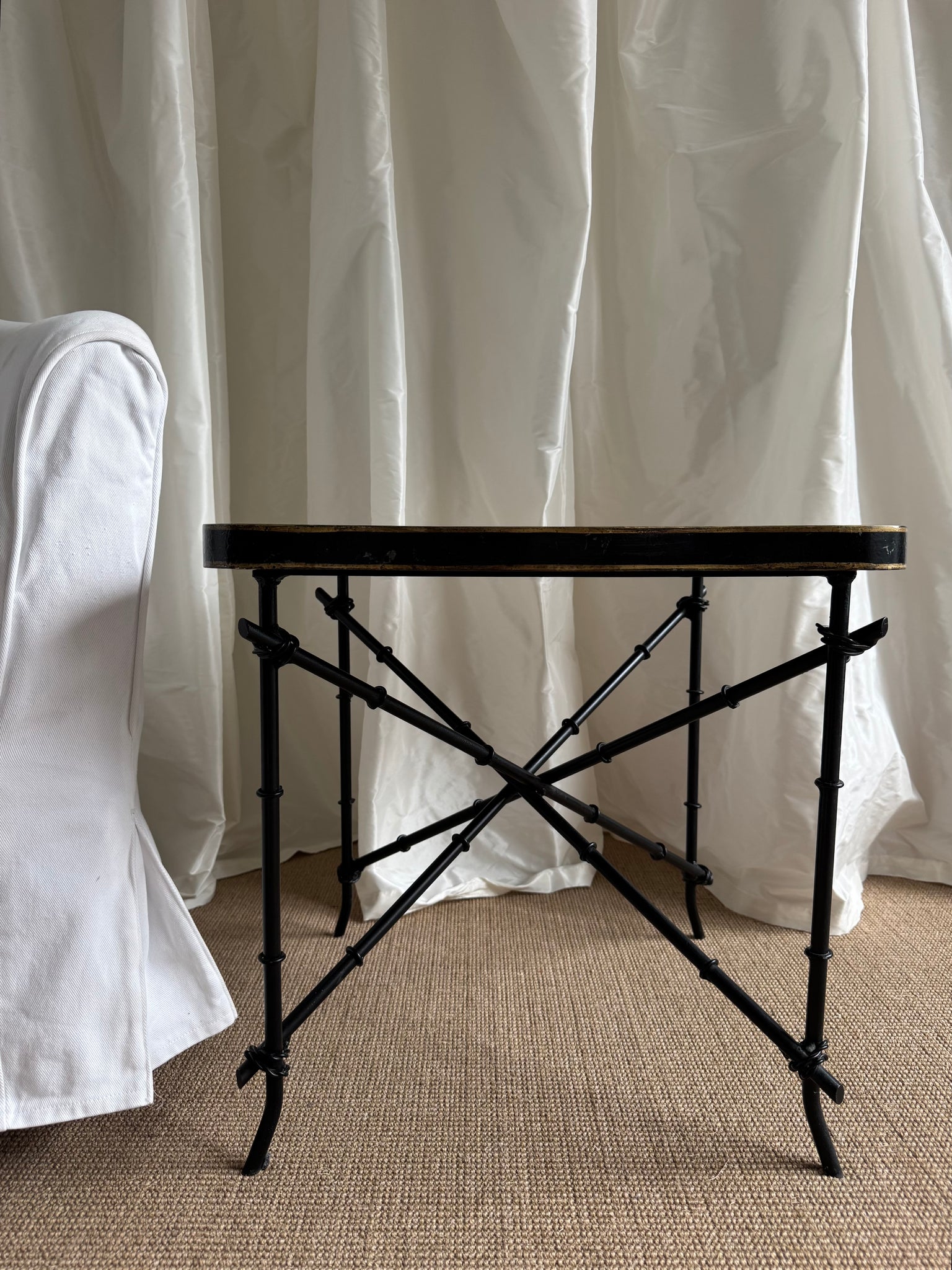 The French Faux Bamboo table combines a modern design with classic elements. The embossed and aged leather-look table top creates a stylish aesthetic, while the gold-plated edges add additional elegance. The artfully designed legs offer not only stability, but also a unique visual accent.