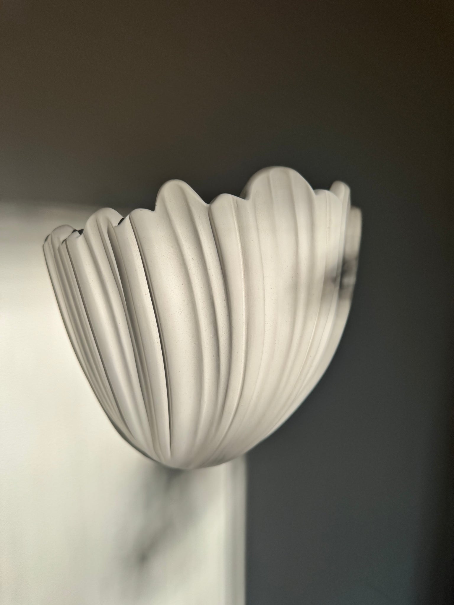 The vintage plaster wall lamps are newly wired and offer a soft, indirect light.
